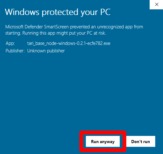 Run the Tari exe. If you get a message from Microsoft Defender SmartScreen saying "Windows Protected your PC, click on More info, then Run anyway.