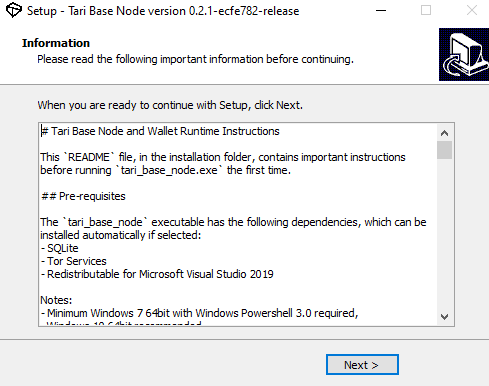 Step 1: Downloading and installing the Tari Windows Binaries