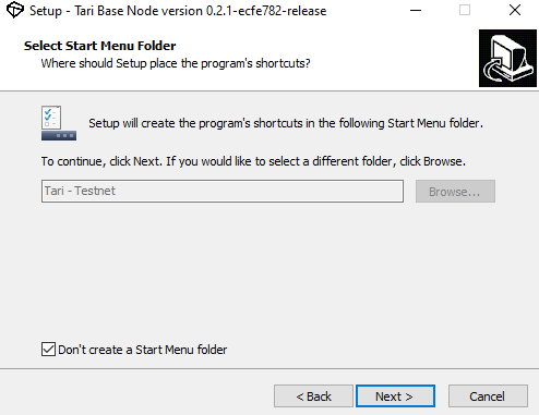 You can have Tari create a start menu folder if you'd like, but we won't be using it for this tutorial.