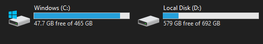 The current version of Tari for Windows requires around 100GB of free space in order to run. If your main C: drive doesn't have this much space, or you rather not store the blockchain on your main drive, you may wish to use a secondary drive instead. You can check how much space your hard drive has by pressing the window key and typing "This PC"